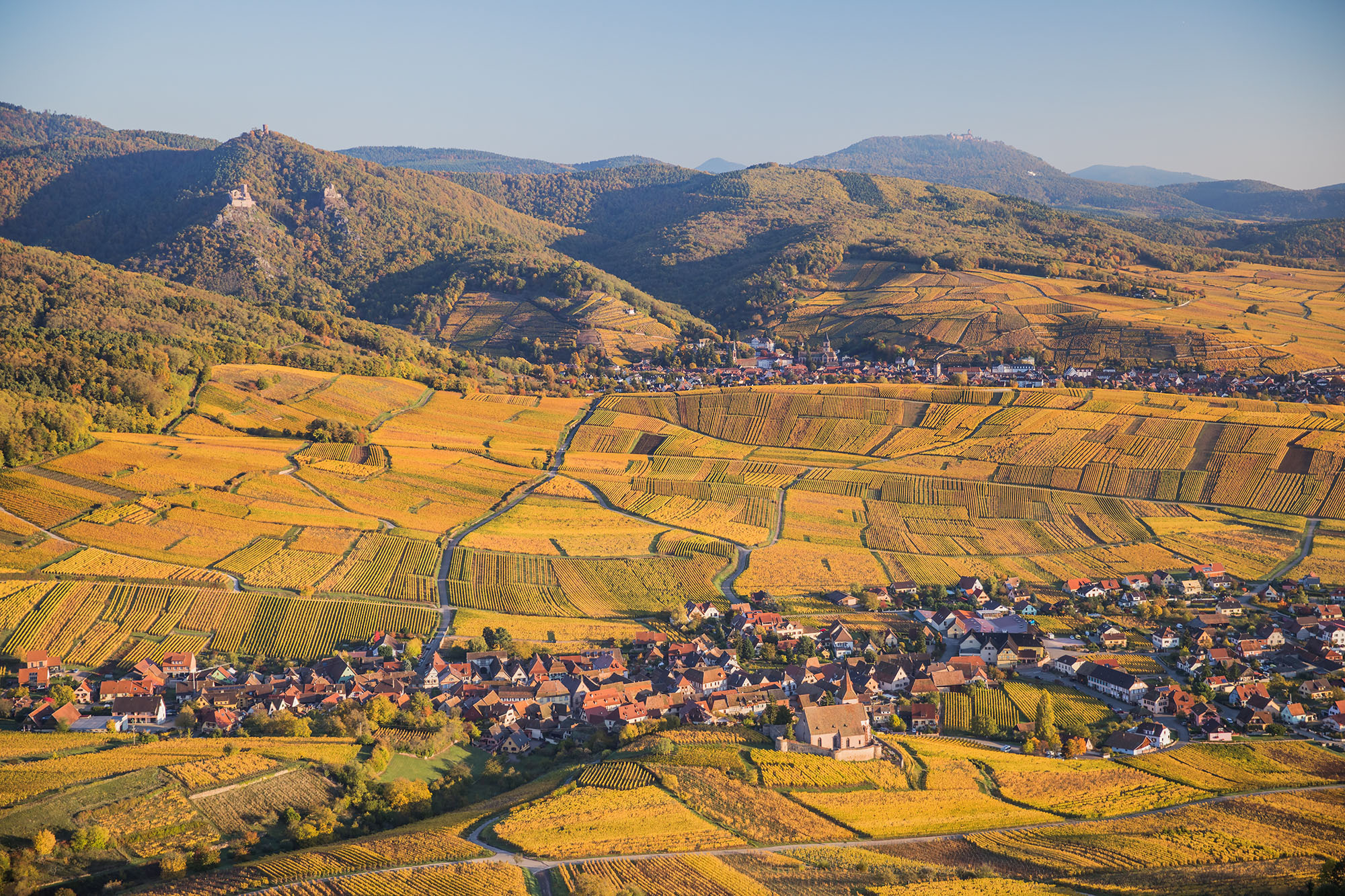 sur les communes de Ribeauvillé, Bergheim et Saint-Hippolyte. 80% du Domaine bénéficie d’une exposition Sud-Sud-Est et Sud-Sud-Ouest.